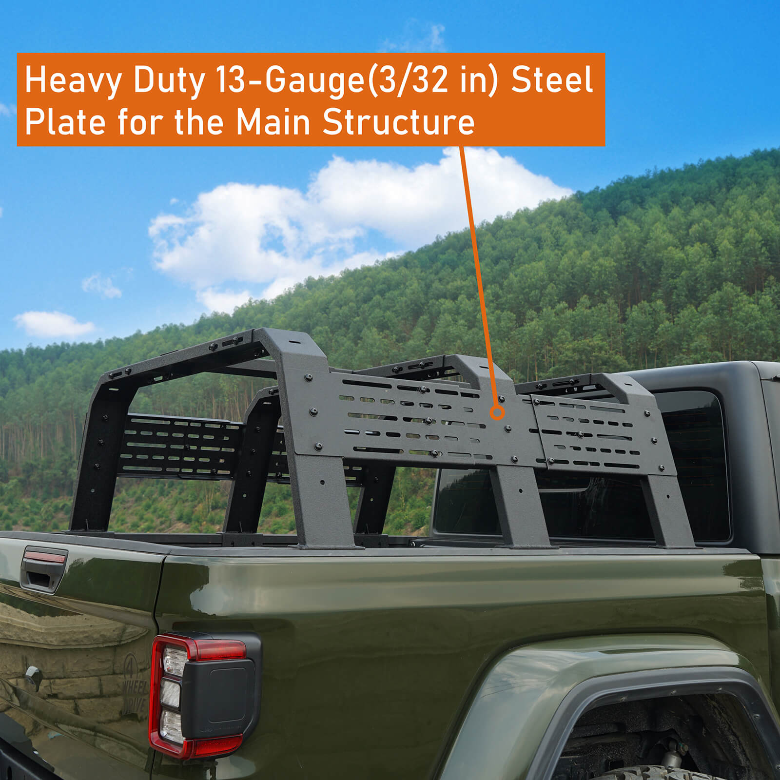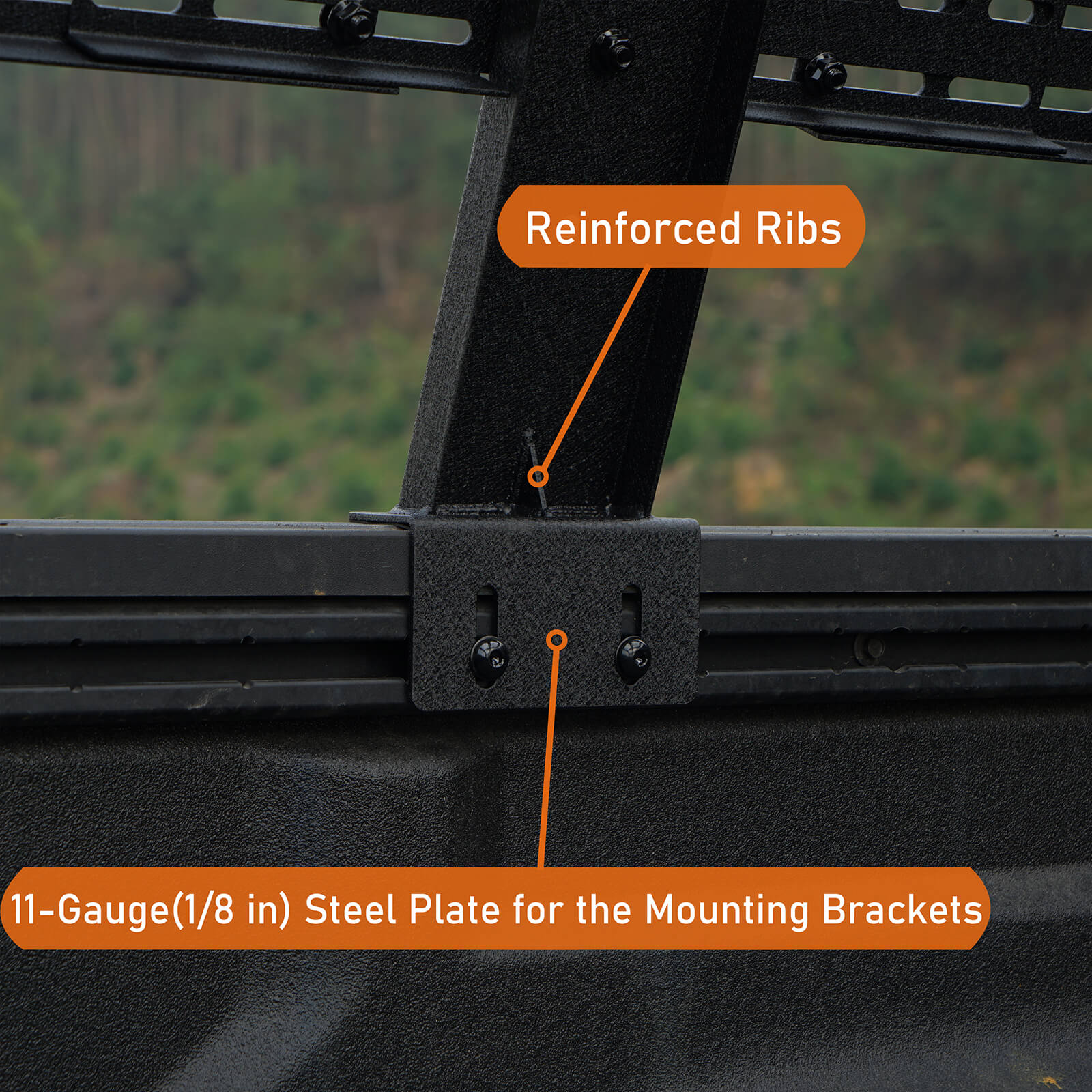 Name: 18.8" High Overland Bed Rack Compatible with Jeep Gladiator JT w/ Factory Bed Rails 20-25 Toyota Tacoma(5' Bed) 05-23