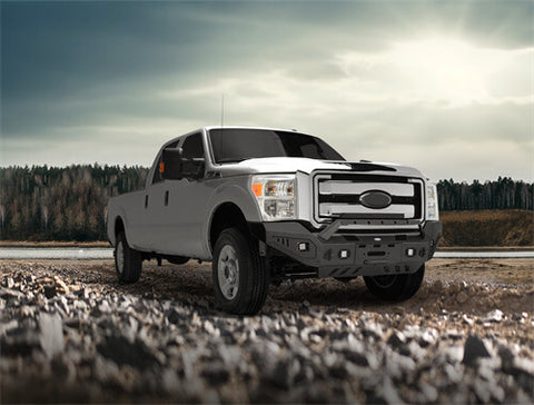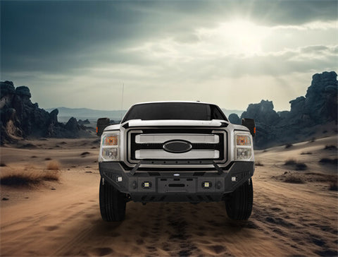 Aftermarket Full-Width Front Bumper w/ Winch Plate & LED Spotlights For 2011-2016 Ford F-250 - Ultralisk4x4