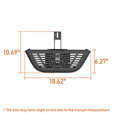 Appealing Off-Road Design. The Side Hoop Steps offer an appealing design that enhances your vehicle's aesthetic appeal. Engineered for effortless entry and exit, these steps improve overall accessibility, featuring durable non-slip pads for secure footing. Their rugged off-road appearance, marked with "SINCE 1941," makes a bold statement. Prioritizing vehicle durability, they provide robust protection for both sides and the undercarriage. Suitable for both driver and passenger sides, these steps blend style with functionality, offering a comprehensive solution for those seeking visual appeal and practicality.