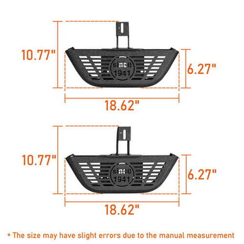 Rugged Off-Road Appearance. The Side Hoop Steps provide seamless vehicle entry and exit, improving accessibility. Elevate your vehicle's appeal with eye-catching aesthetics and a rugged off-road appearance featuring "SINCE 1941." Secure footing is ensured by durable non-slip step pads. Prioritizing vehicle durability, these steps offer robust protection for both sides and the undercarriage. Available for both driver and passenger sides, they seamlessly blend functionality and style, enhancing the visual allure of your vehicle.