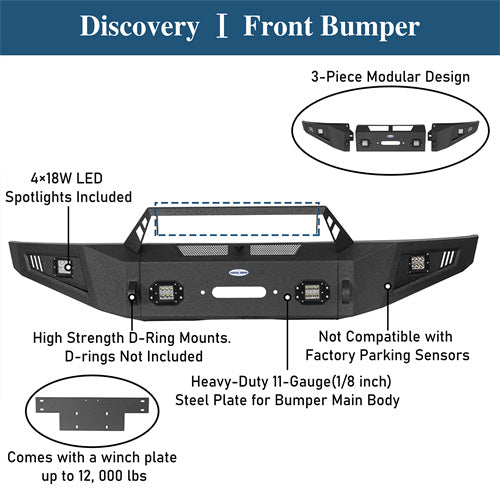 - Heavy-duty, high tensile 11-gauge (1/8 in) steel for the bumper main body, 10-gauge(9/64 in) steel for the mounting structure