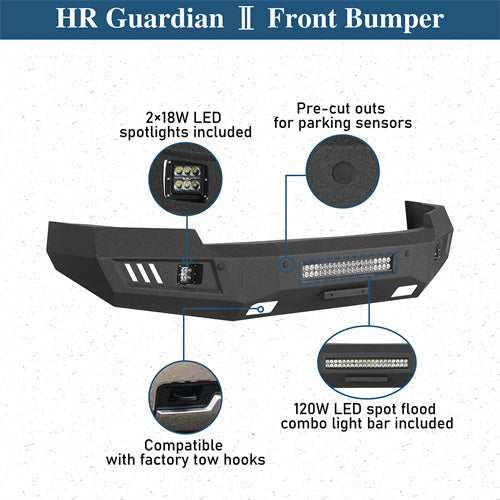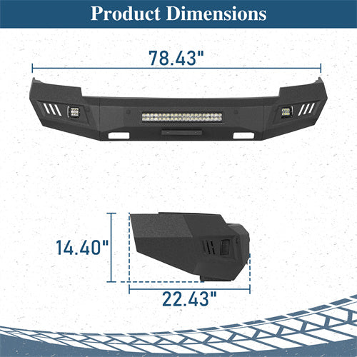 Heavy-Duty Construction. Designs used CAD technology to craft this Front Bumper from high-grade, rust-resistant steel with a vehicle-specific fit. Its high-strength construction, optimum approach angles, and excellent ground clearance provide your truck with an enhanced off-roading capability. It is also fortified by a hammer black, powder-coated finish for reinforced service life and appealing good looks.