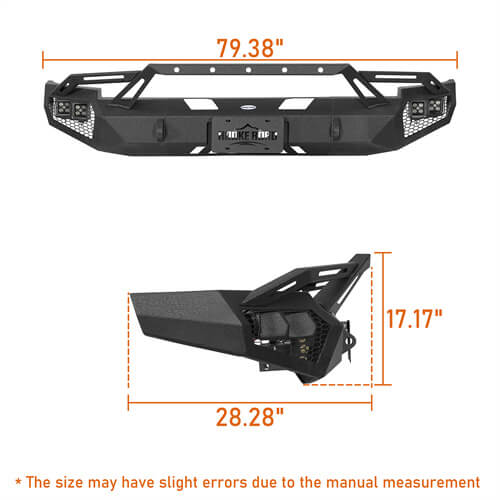 - Heavy-duty, high tensile 11-gauge (1/8 in) steel for bumper main body, 8-gauge(11/64 in) steel for mounting structure and 10-gauge(9/64 in) steel for winch plate