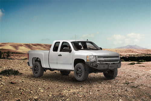 Earthshaker Series Front Bumper w/ Winch Plate & LED Spotlights For 2007-2013 Chevy Silverado 1500 2nd Generation - Ultralisk4x4