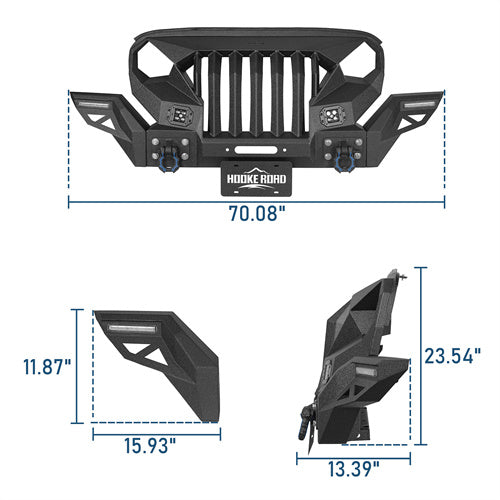 Heavy-duty, high tensile 11-gauge(1/8 inch) steel for bumper main body, 9-gauge(5/32 inch) steel for winch plate