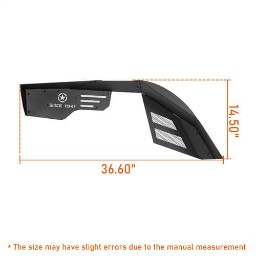 Heavy Duty Construction. The front inner fender liners are meticulously crafted from high-strength 16-gauge steel plates, ensuring superior durability and resilience against harsh conditions. Complementing this sturdy build is a durable black powder coat finish, which adds an extra layer of defense against corrosion, rust, and wear. This finish not only enhances the fender liners' longevity but also maintains a sleek and polished appearance, ensuring they look as good as they perform over time.