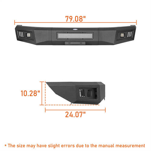 - Heavy-duty steel construction: 11-gauge(1/8 Inch) steel for the bumper main body, 10-gauge(9/64 Inch) steel for the mounting structure plate