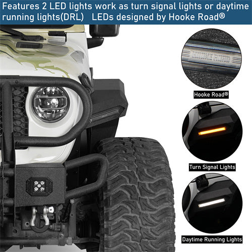 Front Fender Flares w/ LED Turn Signal Lights For 2018-2025 Jeep Wrangler JL & Gladiator JT - ultralisk4x4