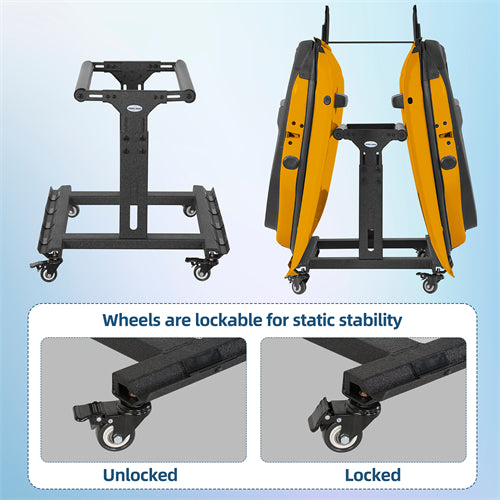 Ingenious Storage Cart Solution. The Doors Storage Cart is a functional and visually appealing solution for storing and organizing your doors. Designed to hold two doors securely, this cart maximizes space efficiency by positioning the doors inclined and facing each other. With an adjustable design, you can easily customize the height from 15.5" to 23.0" and the width from 9.6" to 13.1". This ensures a perfect fit for your specific doors, providing a sturdy and compact storage unit. To protect your doors from scratches and impact, the cart includes thick EVA foam sheets and pipes. This ensures that your doors remain in excellent condition while stored on the cart.