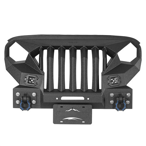 Aggressive Styling and Radical Design. The Black Series Mad Max Grill+Bumper is a rugged, all-in-one upgrade that combines grille and bumper into a seamless, one-piece design. Engineered for superior durability, its integrated structure enhances vehicle rigidity while showcasing a bold, yet contradictory, space exterior design—blending aggressive off-road styling with modern aesthetics. It includes two 25W LED spotlights for enhanced visibility, and a built-in winch plate supporting up to 12,000 lbs.