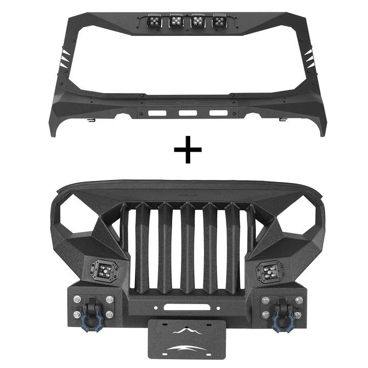 Mad Max Front Bumper w/Steel Grille Guard & Windshield Frame Cover(07-18 Jeep Wrangler JK) - ultralisk4x4