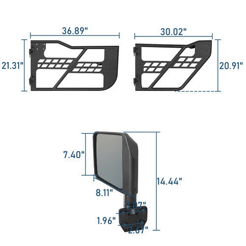 Name: Jeep Wrangler JL Tubular Doors & Door Storage & Side Mirrors