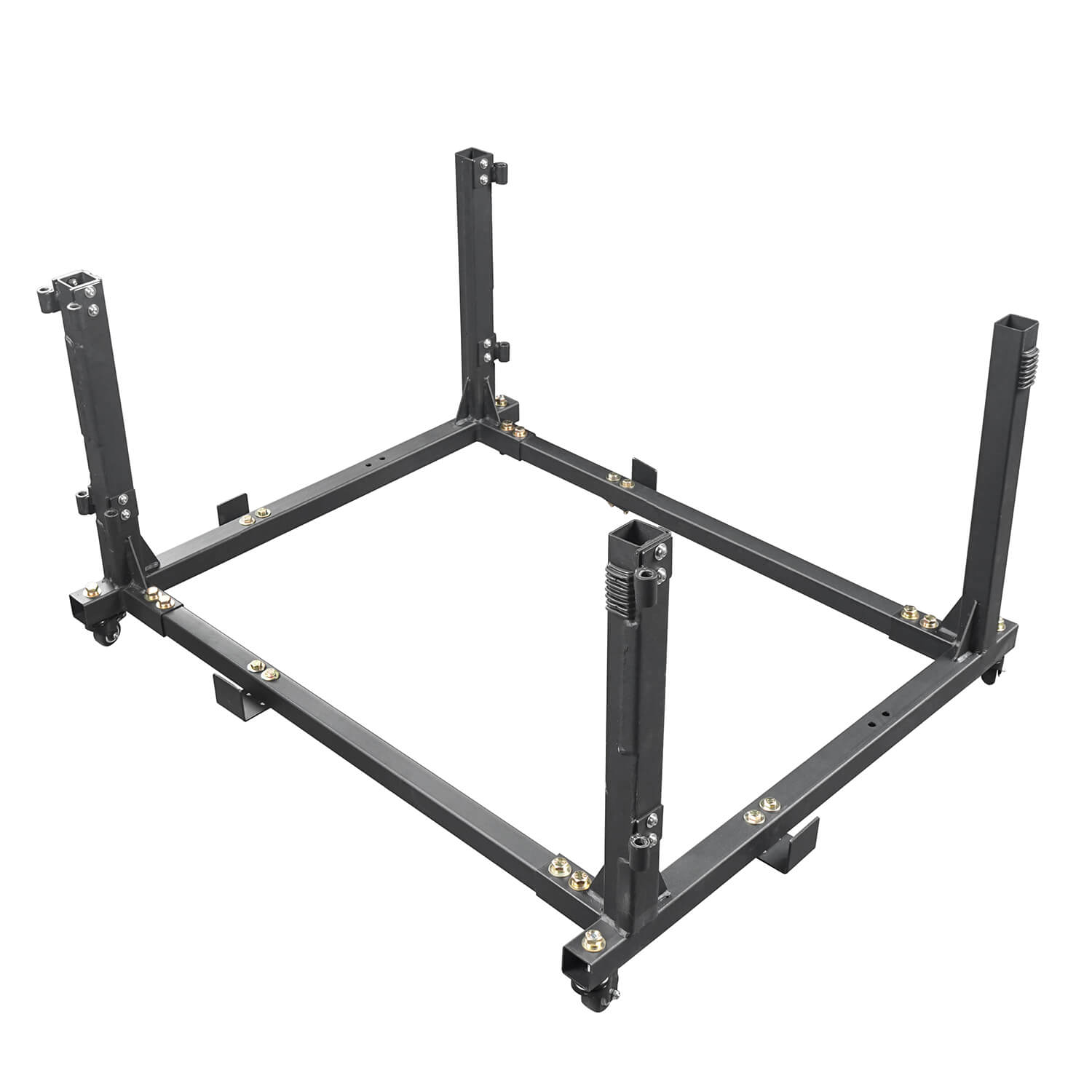 Carbon steel alloy, resisting rust, textured wrinkle black powder coat finish, the frosted spray painting process; Designed to sit in the door bars, fit for 4 doors. Superb design stores top in a vertical position saving space around the garage or shop. Will not scratch or damage your doors.Rectangle design; Tough welded-steel construction.Particularly useful with the storage of doors. Wheels glide the top to any area of the garage or shop with one hand! Pulley removable design; Steel construction for sturdy quality that really lasts. Include four heavy-duty swivel caster wheels mounted to an all-steel tube frame